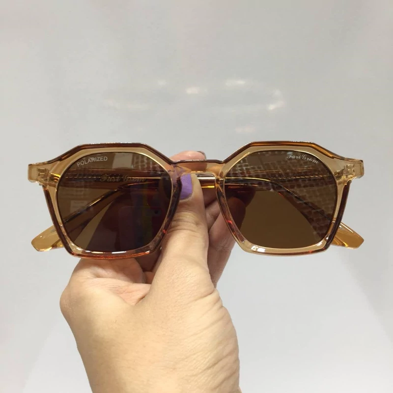 عینک های کپی برند فری گرام چند ضلعی رنگ عسلی دارای uv400 استاندارد و پلاریزه